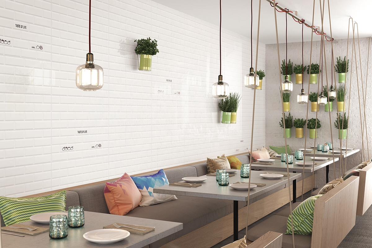 白色仿文化磚,演繹個性北歐風,流暢的線條設計,幹淨剔透,簡潔大方。時尚與自然的融合,既複古又現代,營造一種自然、隨性的風格,呈現出令人舒適的氛圍。
